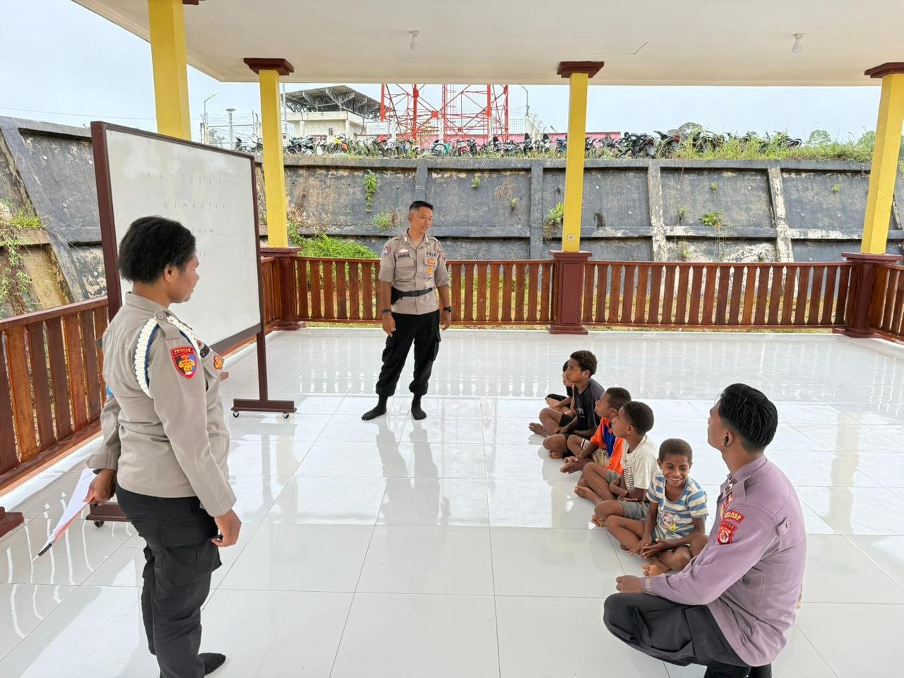 Papua – Personel Polres Boven Digoel melaksanakan kegiatan pembelajaran bagi anak-anak putus sekolah yang berlangsung di Ruang Edukasi Keterampilan, wilayah Kota Tanah Merah.