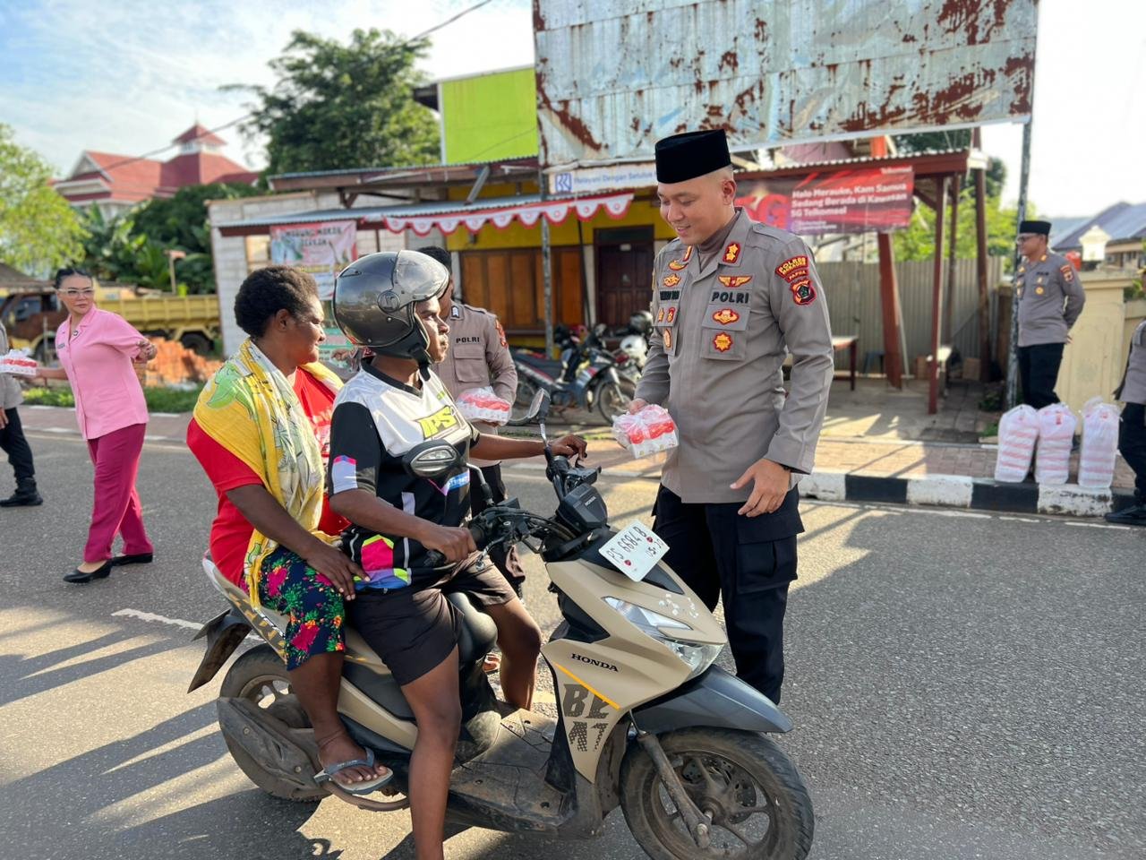 Dalam kegiatan tersebut, ratusan paket takjil dibagikan kepada para pengendara roda dua, roda empat, serta masyarakat yang melintas di depan Mapolres Merauke. Selain membagikan takjil, Kapolres Merauke juga menyampaikan pesan-pesan keselamatan berlalu lintas kepada masyarakat.